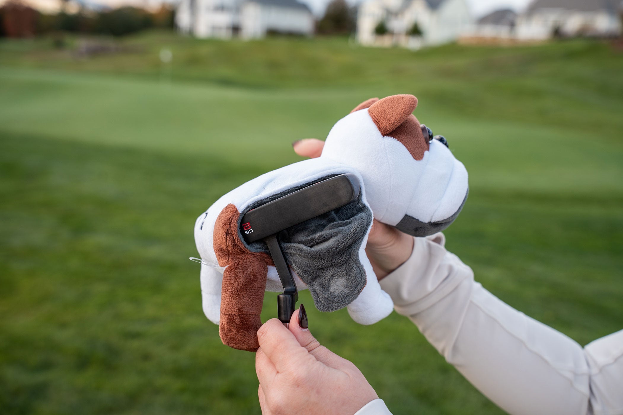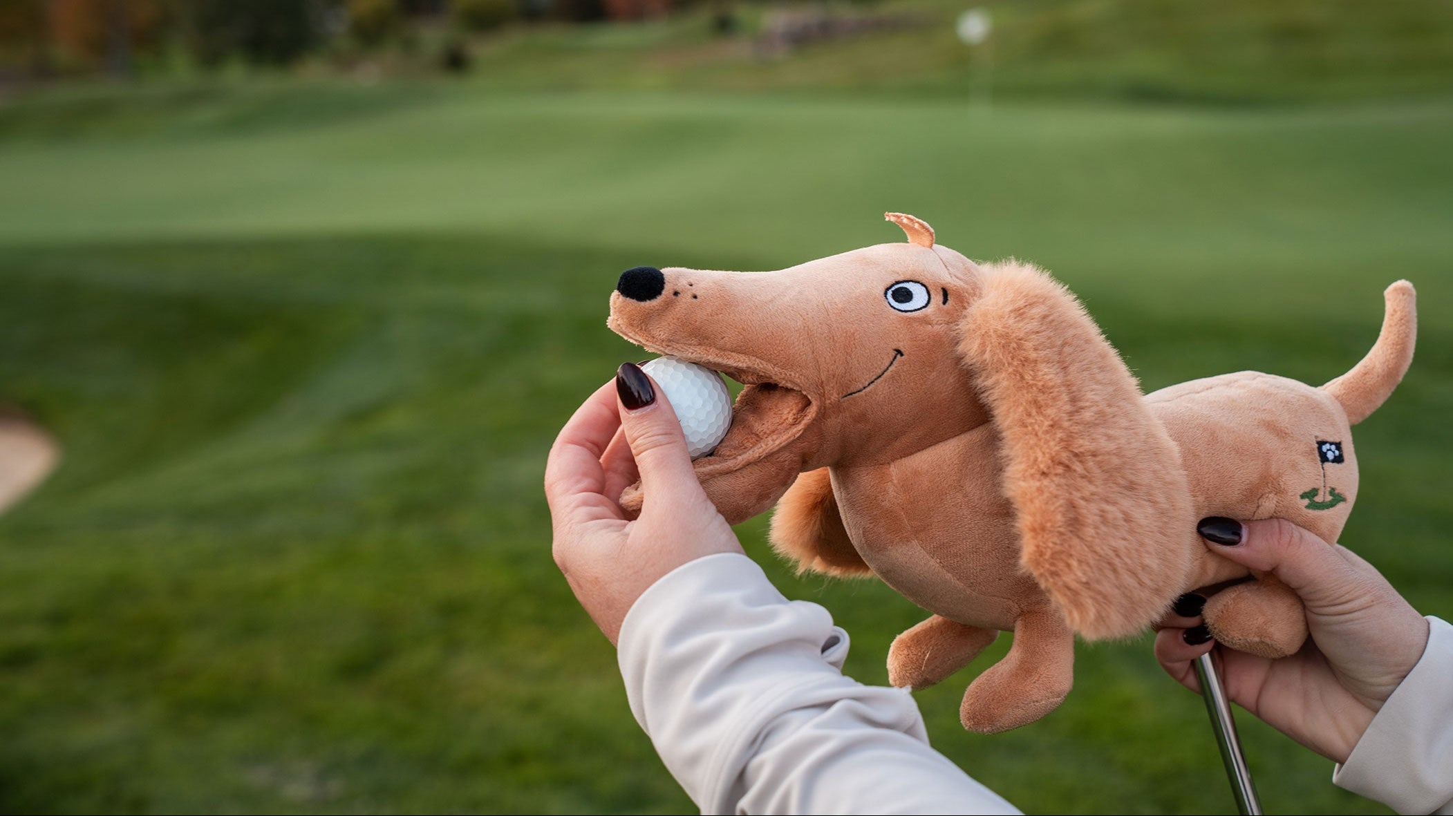 With our Dachshund style, its Velcro cleaning strip neatly tucked under the ear flap and at the bottom of the feet. Perfect for keeping wedge grooves clean for better control on your short-game shots.